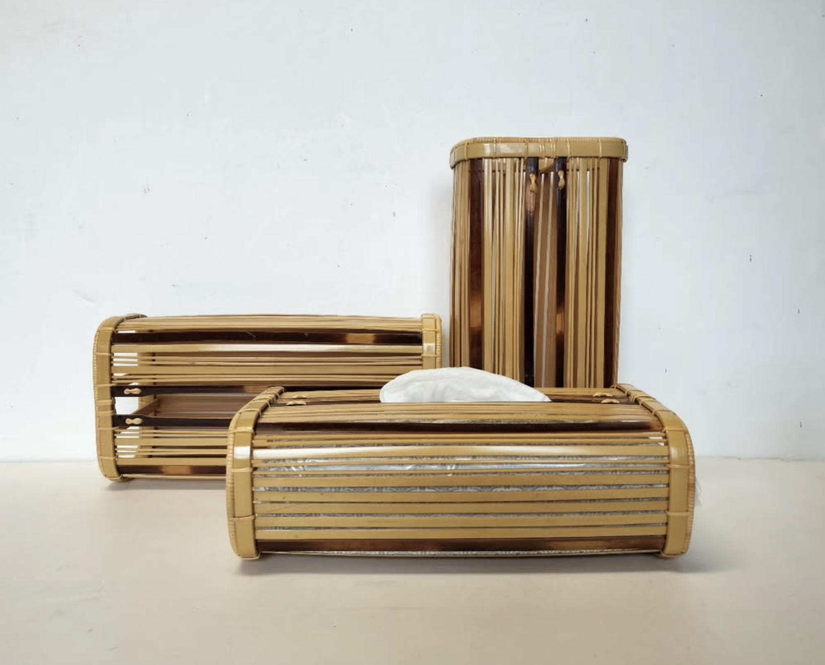 • 育てる愉しみ: 使うごとに飴色へと変化していく過程は、天然素材ならではの醍醐味。末長く愛用いただける一品です。(写真一番右:2年使用、真ん中半年使用)
